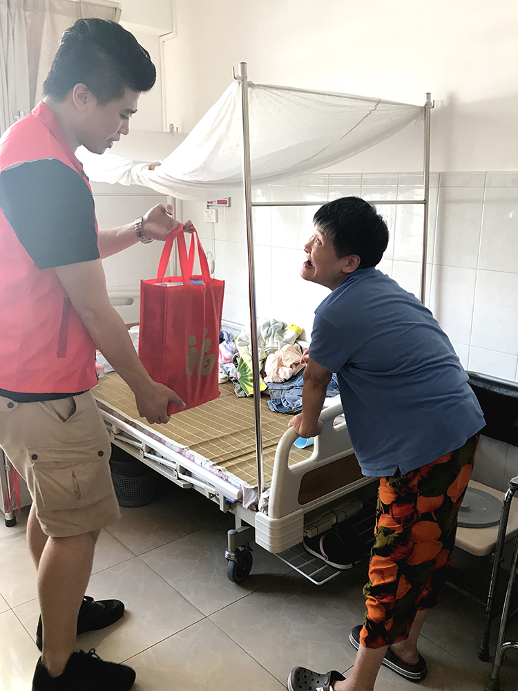 演出结束后,基金会员工来到老人身旁,为老人们送上精心准备的慰问礼品。老人们表示很高兴,感谢大家对他们生活的关心。大家的到来,给平日清静的福利中心带来了阵阵欢笑声,整个敬老院洋溢着温馨、祥和的气氛。在要离开福利中心时,老人们和福利中心负责人向荣超基金会表示由衷的感谢,感谢董事长、杨会长以及基金会员工对长者的关爱。此次慰问活动虽已结束,但我们的敬老行动仍在继续。也希望能向社会传递更多积极向上的正力量,传扬无私奉献、敬老爱老的精神。(荣超基金会 周胜君)