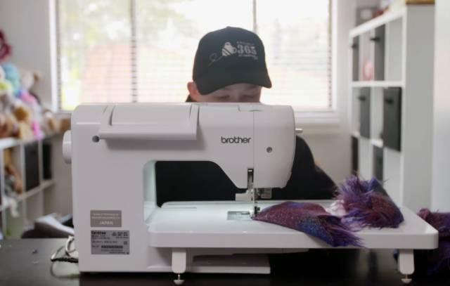 他三岁的小妹妹也经常来帮他做泰迪熊。