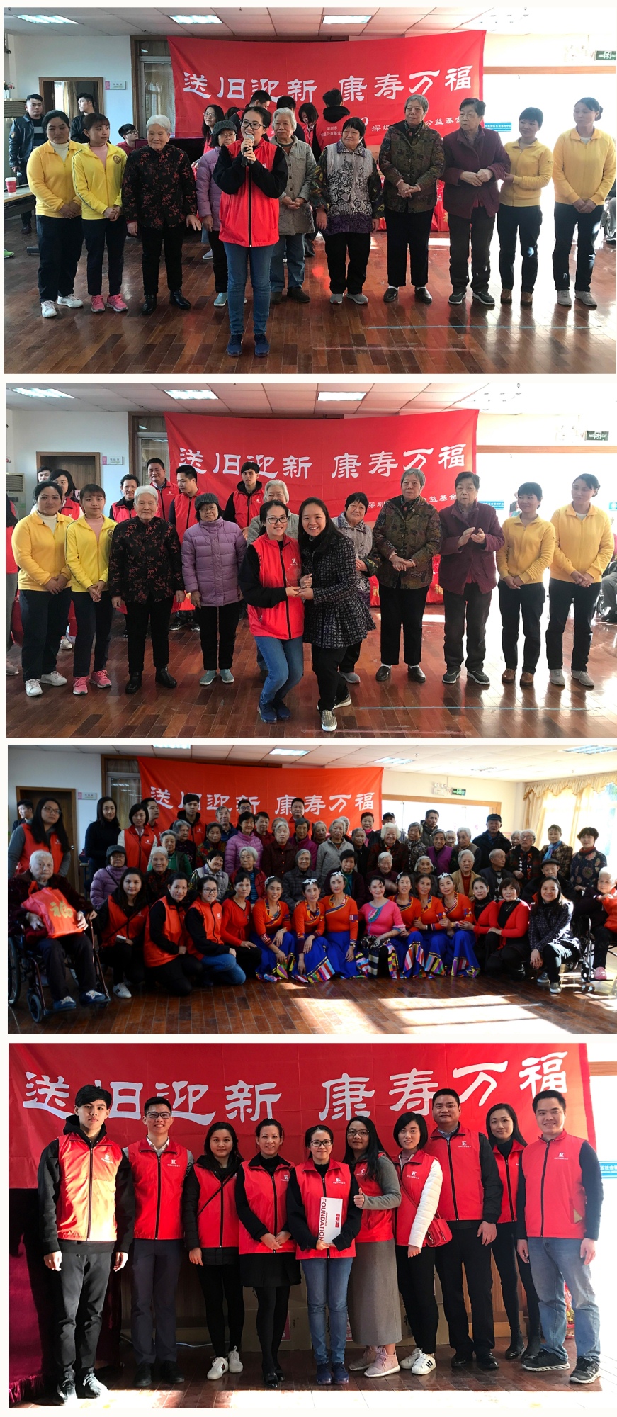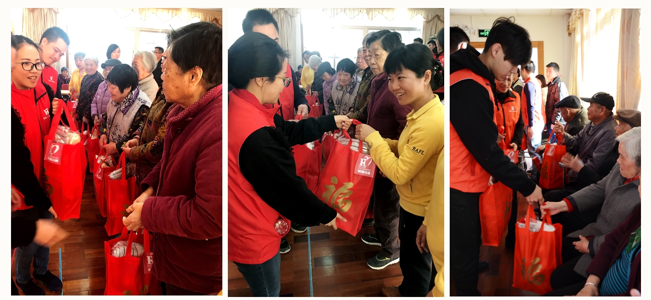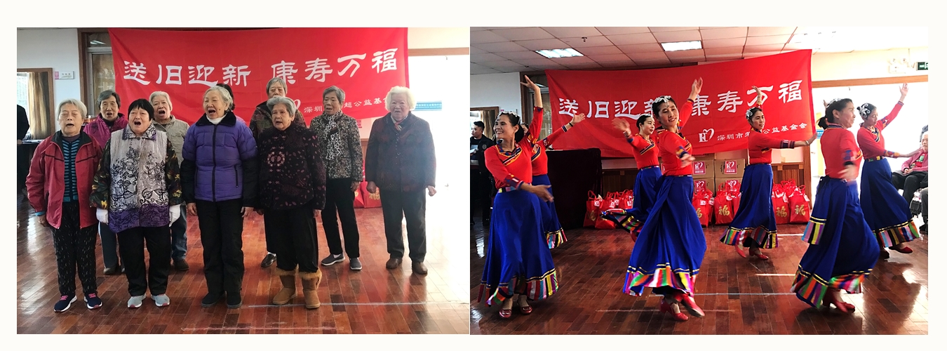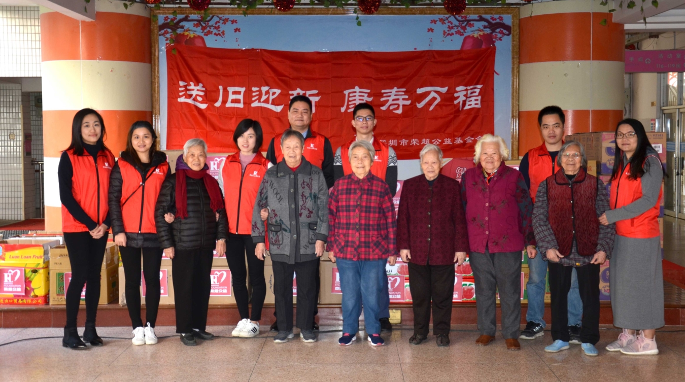 12月19日下午,由深圳荣超公益基金会杨颖婷会长带领荣超志愿者们走进深圳市宝安社会福利中心,组织开展 “送旧迎新•康寿万福”慰问孤寡老人送温暖活动。在冬至节来临之际,我会向福利中心的孤寡老人及护工送上由我会精心准备的幸福礼盒180份(价值约五万元)以及节日的问候!