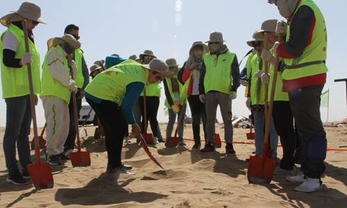 易解放带来志愿者一起在沙漠里植树