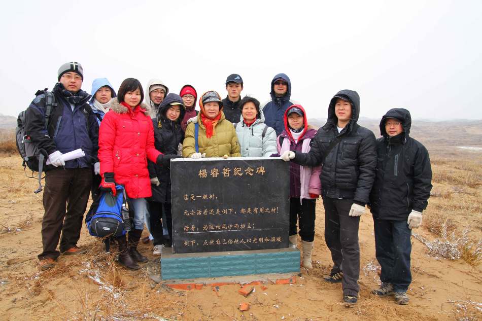 易解放与NPO绿色生命公益组织的志愿者在杨睿哲纪念碑合影