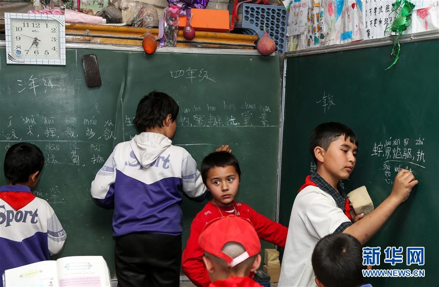 疏勒县的孩子们在“爱心小课堂”新教室里上课。