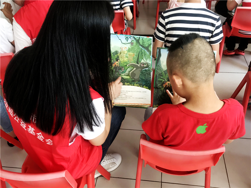 首先,由于理事(小鱼儿老师)给孩子们讲演《森林王子》的故事。现场每位孩子都拿到一本3D的故事书,志愿者们陪伴着小朋友,听着小鱼儿老师生动有趣的讲演,翻阅着吸引眼球的3D故事书,认真听完了整个故事。故事结束后,进行有奖抢答的活动,孩子们都非常积极举手抢答,我们还准备了各式各样的布偶娃娃作为奖品,把游戏奖品送到孩子们手中的时候,他们脸上洋溢出的笑容足以表达他们此时此刻的心情。