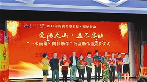 27日上午,“爱洒天山•益不容辞”2016年新疆“希望工程•圆梦行动”在新疆乌鲁木齐第九中学举行,活动的主要亮点是“一本画册 圆梦助学”公益助学金发放仪式。活动现场有580多人,包括受助学生代表、新疆退伍兵等爱心认购团队和个人等。同时,活动由新疆“丝路万象”公众号向全国进行同步网络视频直播。